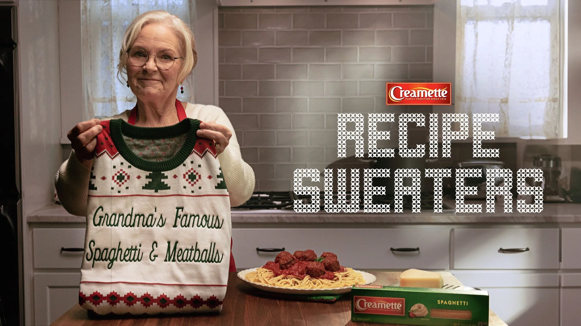 Creamette teamed up with Internet celebrity ‘Brunch with Babs’ to launch a campaign that combined two beloved holiday traditions: Christmas sweaters and family recipes. Fans submitted their family recipes that were then embroidered by real life grandmothers on sweaters for a one-of-a-kind holiday gift.